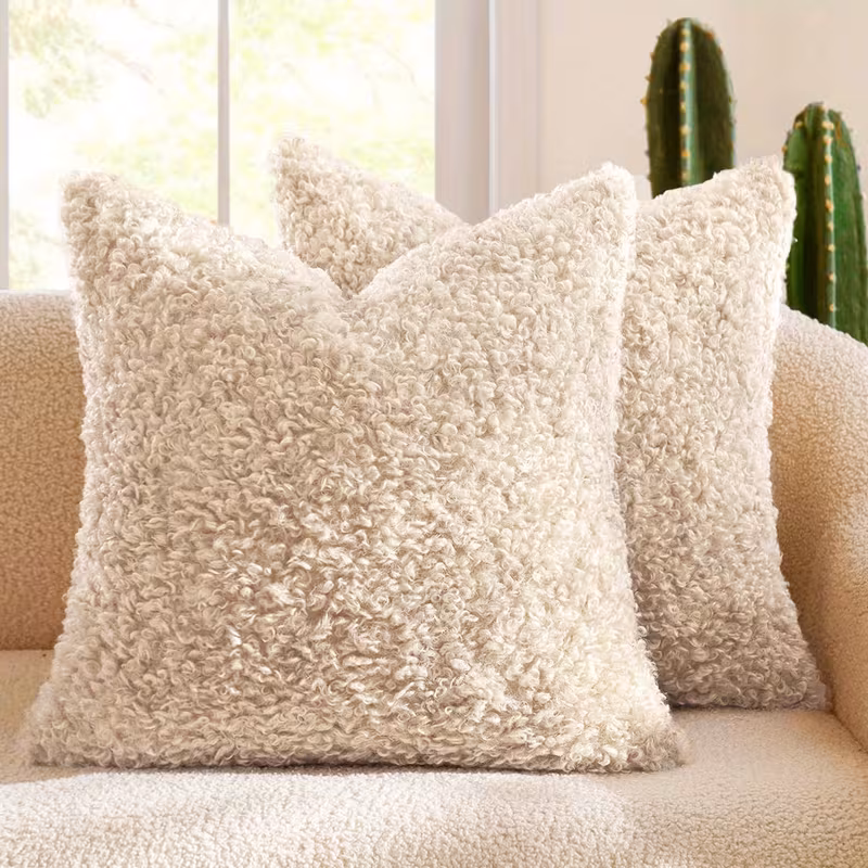 A soft teddy-textured cushion in a neutral tone, perfect for adding warmth and comfort to sofas, chairs, and beds.