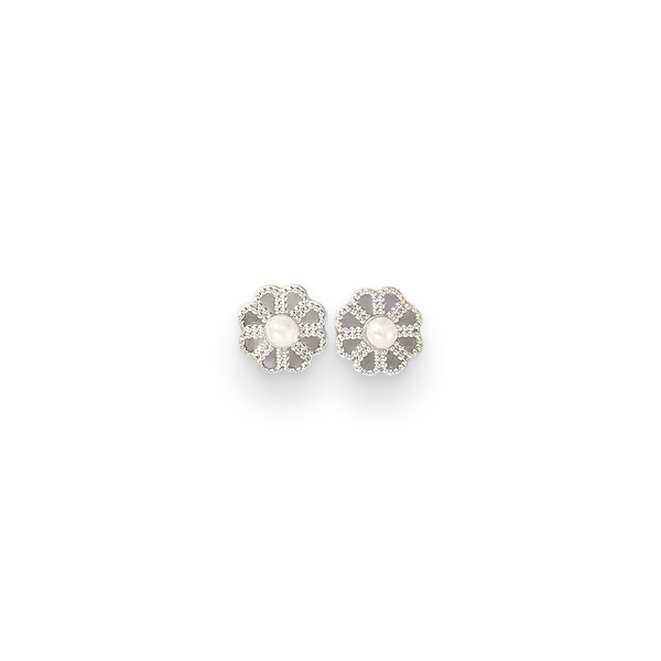 Pearl Lace Flower Earrings 1.1cm – Elegant Silver Style