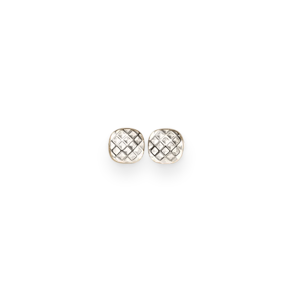 Add bold charm to your look with the Quilted Square Stud Earrings. Their quilted pattern and chic silver style design make them a fashionable accessory for statement outfits.