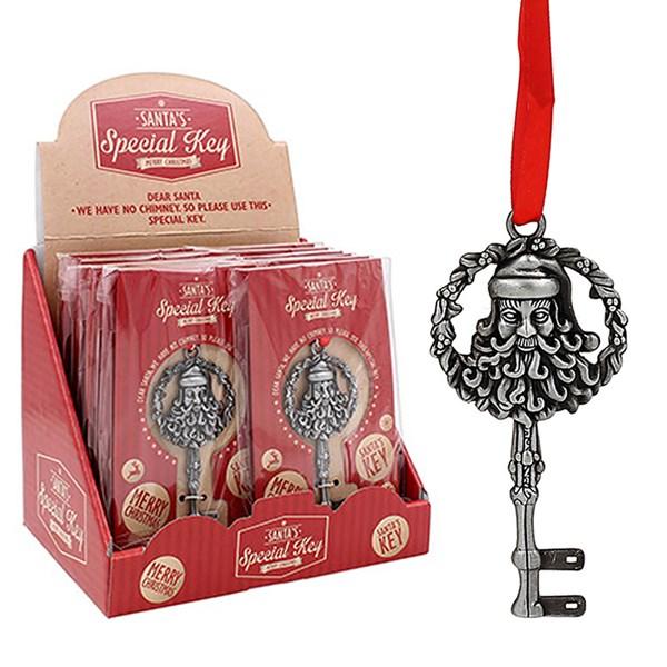• Design: Antique-style key with Santa detail and ribbon hanger