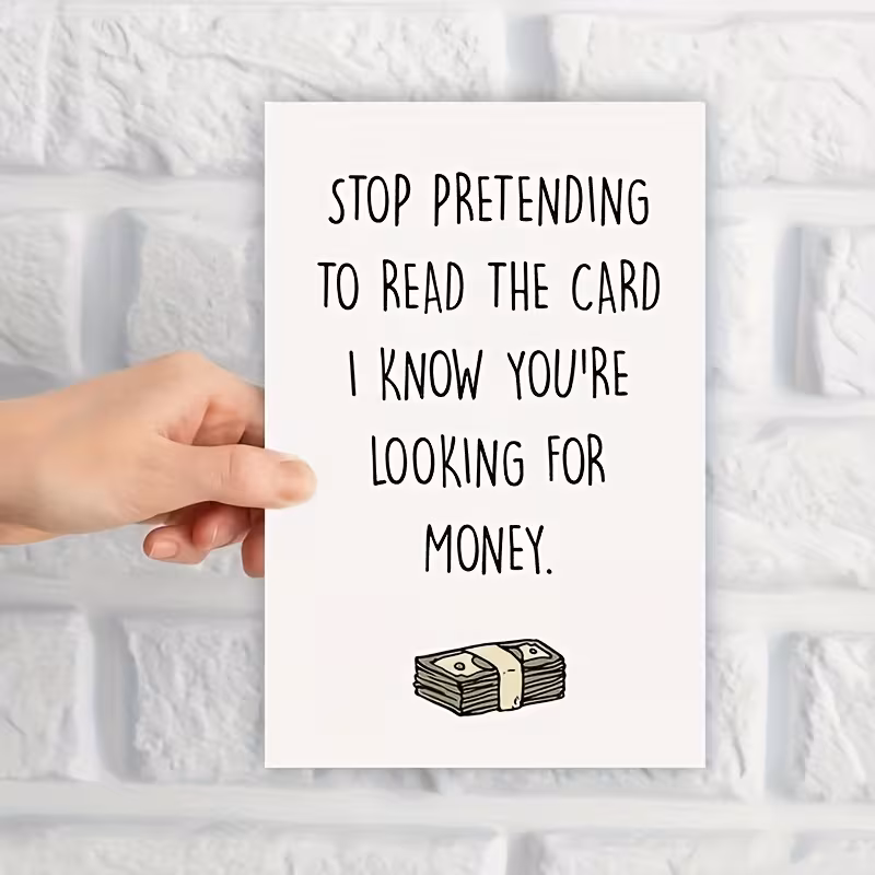 A dry-humour card with a modern, minimalist feel. Blank inside for your own message.