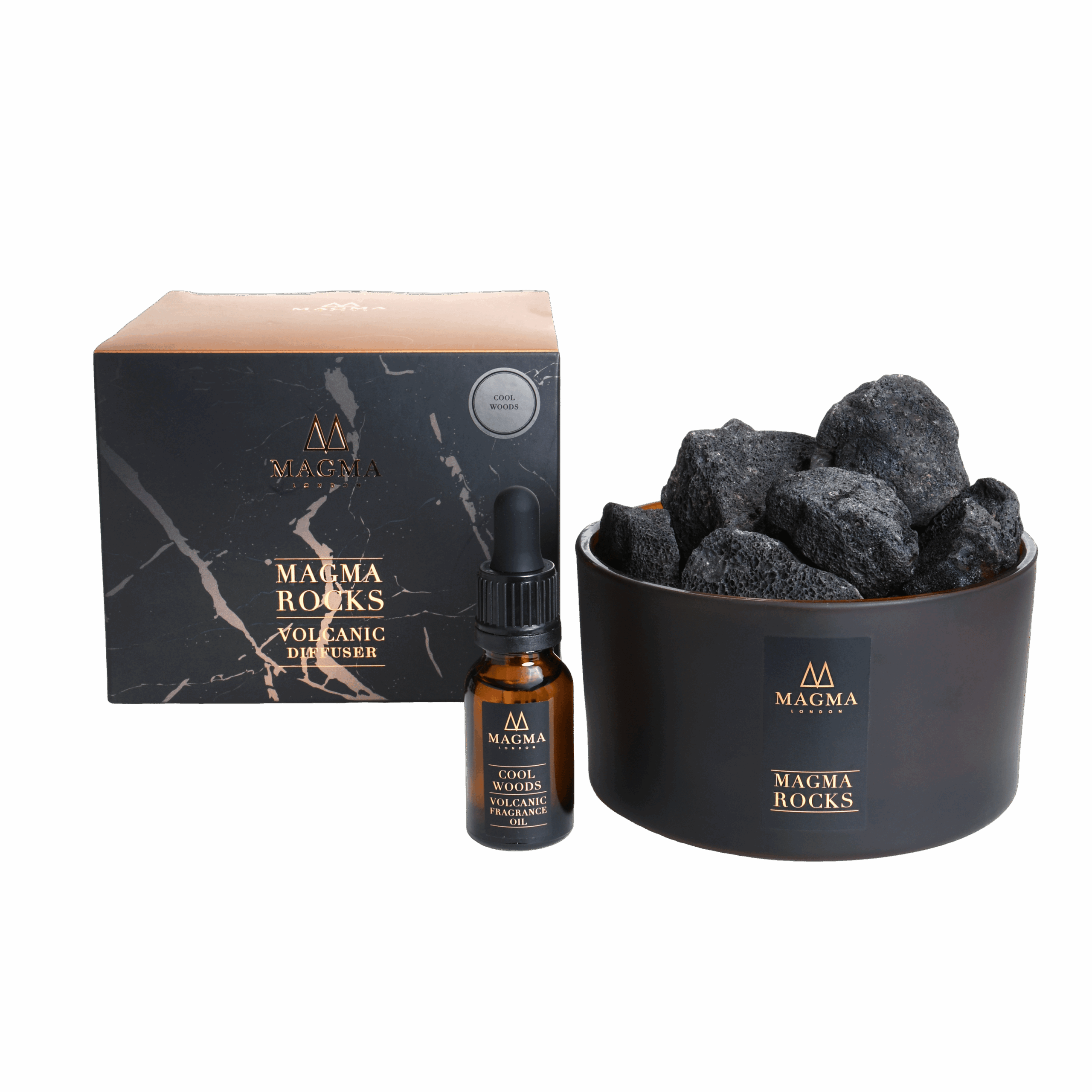 Magma Rocks or Basalt stone is an earthy and intense volcanic mineral, created from molten lava which has solidified quickly under intense pressure and heat. It is a grounding stone that realigns ones’ connection with mother-earth. This stone helps to give us strength and courage, facilitating calmness during tempestuous times. Magma London have sourced the most porous of these rocks, allowing our uniquely blended essential oils to diffuse in your home.